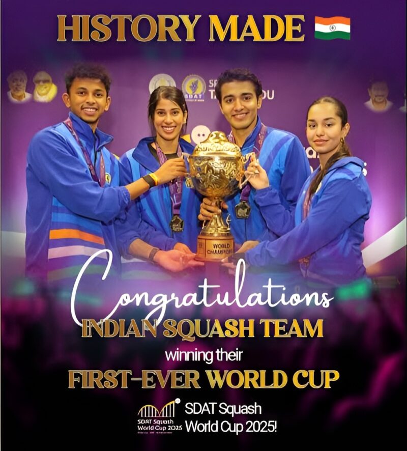 ભારતીય સ્ક્વોશના ચાહકો માટે આ દિવસ ક્યારેય ભૂલાશે નહીં. હોમ ગ્રાઉન્ડ પર રમાયેલી SDAT સ્ક્વોશ વર્લ્ડ કપ 2025ની ફાઇનલમાં ભારતીય ટીમે ટોપ સીડ હોંગકોંગ ચાઇનાને 3-0થી હરાવીને પ્રથમ વખત આ પ્રતિષ્ઠિત ટાઇટલ પોતાના નામે કર્યું. એક્સપ્રેસ એવેન્યુ મોલમાં ભરાયેલી ભીડ વચ્ચે ભારતીય ખેલાડીઓએ અદ્ભુત પ્રદર્શન કરીને ઇતિહાસ રચ્યો. આ વિજયથી ભારત એશિયાનો પ્રથમ દેશ બન્યો છે જેણે સ્ક્વોશ વર્લ્ડ કપ જીત્યો છે, અને વિશ્વમાં માત્ર પાંચમો દેશ જેમણે મેજર ટીમ ઇવેન્ટમાં આવી સિદ્ધિ હાંસલ કરી છે – અન્યમાં ઓસ્ટ્રેલિયા, ઇંગ્લેન્ડ, ઇજિપ્ત અને પાકિસ્તાનનો સમાવેશ થાય છે.
