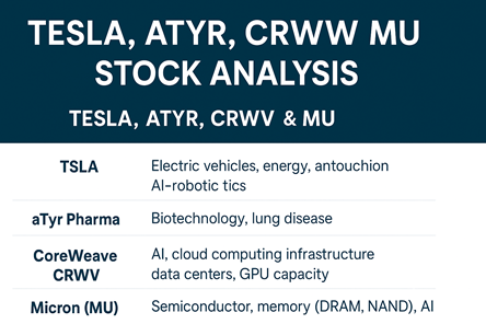 To balance risk and opportunity, investors frequently keep an eye on a wide range of stocks from various industries. We’ll look at four very different names today: Micron, CoreWeave, aTyr Pharma, and Tesla. Every stock has a unique history, set of catalysts, advantages, and disadvantages.